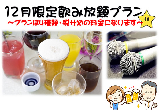 むつみ荘では12月限定の飲み放題プランをご準備しております…