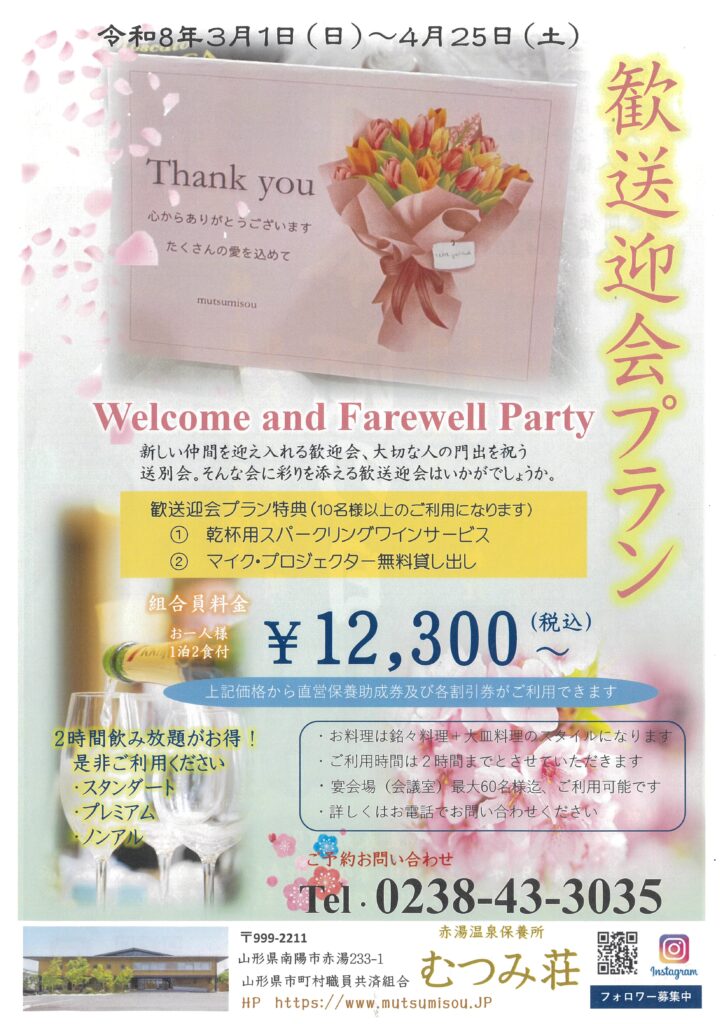 むつみ荘では、心を込めた「歓送迎プラン」をご用意いたしました。